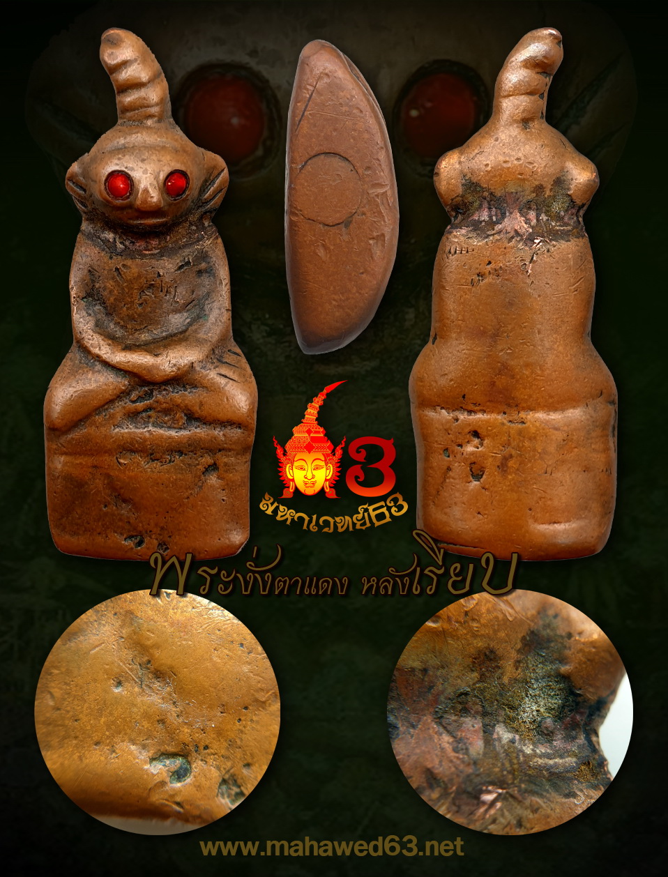 งั่งตาแดงพิมพ์หลังเรียบ เนื้อทองแดงเถื่อนใต้ฐานอุดกริ่งยุคต้น เนื้อสีส้มโทนนี้หายากครับ องค์นี้สภาพสมบูรณ์สุดๆเก่าธรรมชาติรายละเอียดชัดเจนองค์ประกอปแท้ครบ ดูง่าย มองแล้วสบายตา บูชาแล้วสบายใจ
