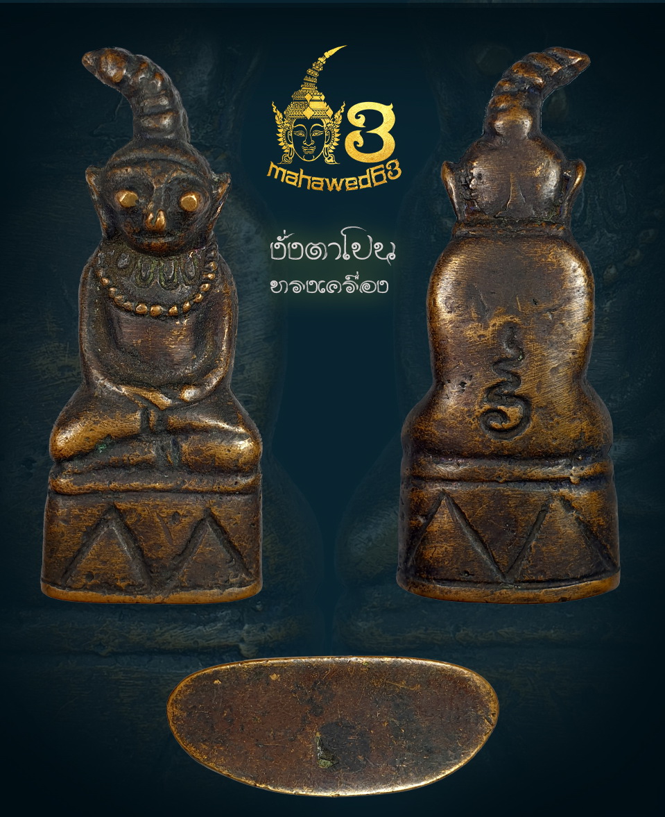 งั่งตาโปนทรงเครื่อง พิมพ์นี้สภาพสมบูรณ์ เป็นพิมพ์หายากพบเจอน้อยมากครับ องค์นี้เป็นพระงั่งสภาพหิ้งอุดกริ่ง ขนาดเล็กพกง่ายน้ำหนักเบา